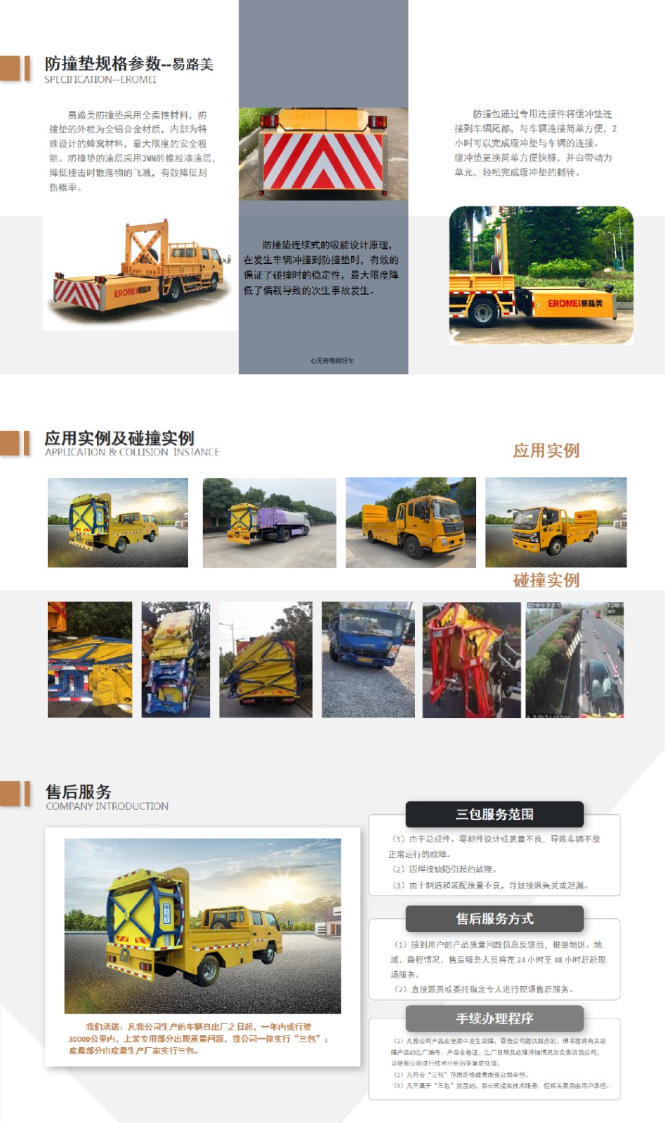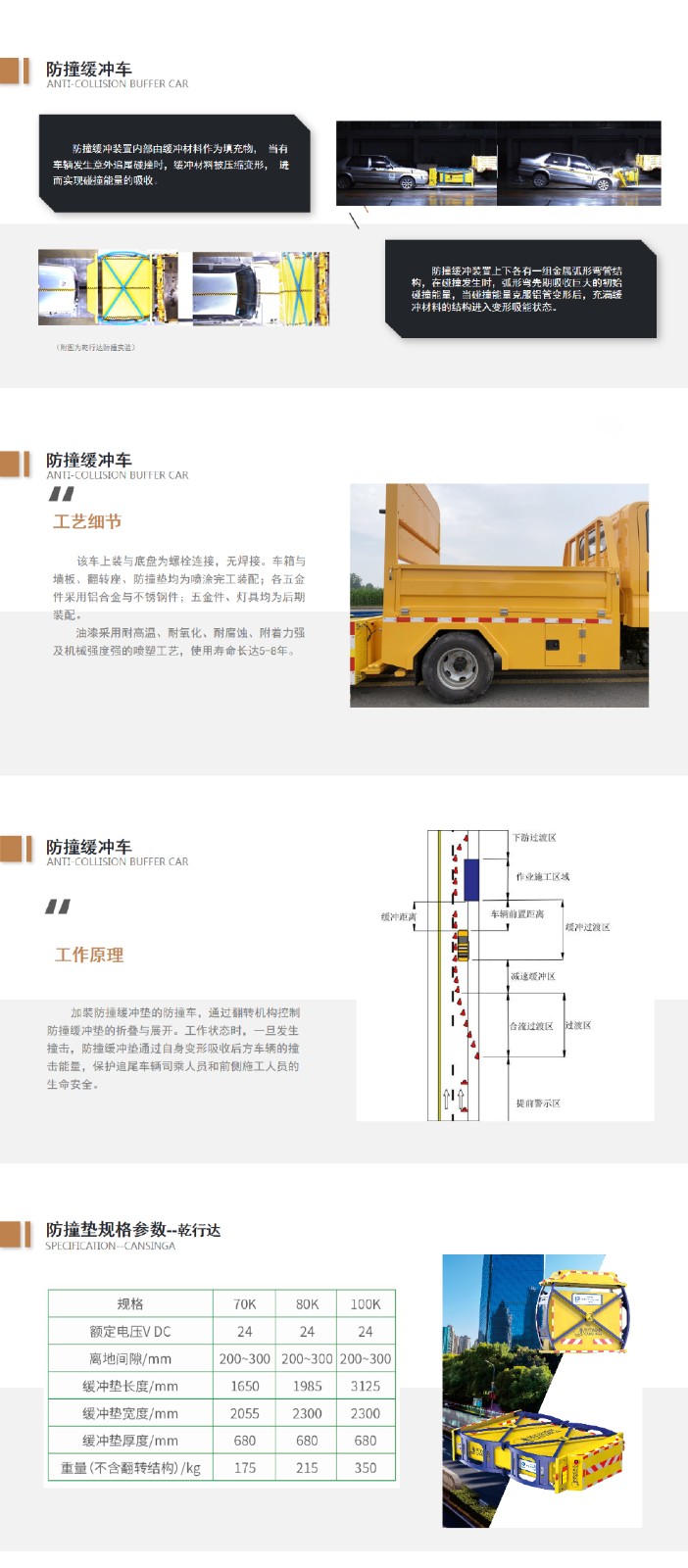 | 整车说明: | 该车为防撞缓冲车辆,专用装置为导向架和防撞缓冲垫等组成;防护材料:Q235B碳钢, 连接方式:左右侧面防护采用焊接连接,后部防护为专用装置代替 ,离地高度240mm;ABS系统型号:APG3550500A,ABS系统生产厂家:浙江亚太机电股份有限公司;随底盘选装前脸样式,选装后尾部灯具; | ||
