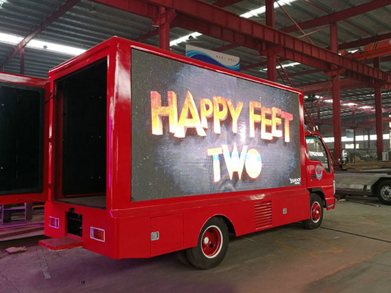 广告车选装配置:客户可根据需求选装屏幕清晰度(P10彩屏、P8彩屏、P6彩屏、P5彩屏、P4彩屏)、单面彩屏、双面彩屏、双